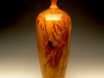 Spalted Tan Oak and fiddle back Maple inlaid with Turquoise.