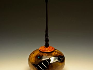Black myrtlewood burl with inlay of turquoise, opal & pewter with applied silver wire. Size ~ 9" X 4" X 4"